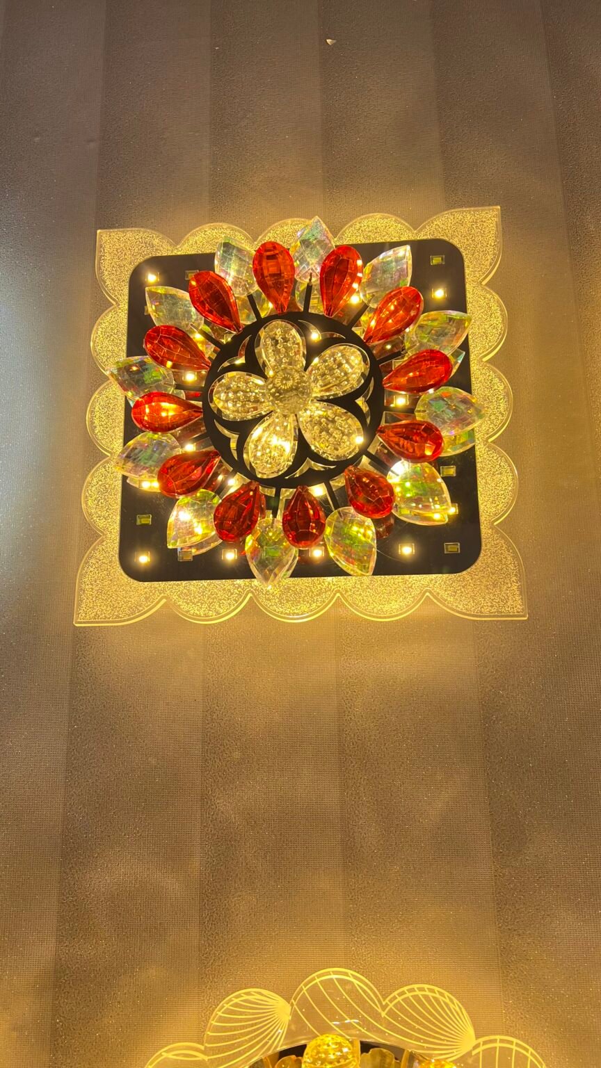 Overview This sophisticated LED ceiling light seamlessly blends contemporary design with artistic elegance. The centerpiece features a stunning crystal floral design, surrounded by an illuminated blue accent panel, creating a mesmerizing glow. This fixture is perfect for adding a touch of modern luxury to any space. Design and Features 🌟 Crystal Floral Centerpiece – The...
