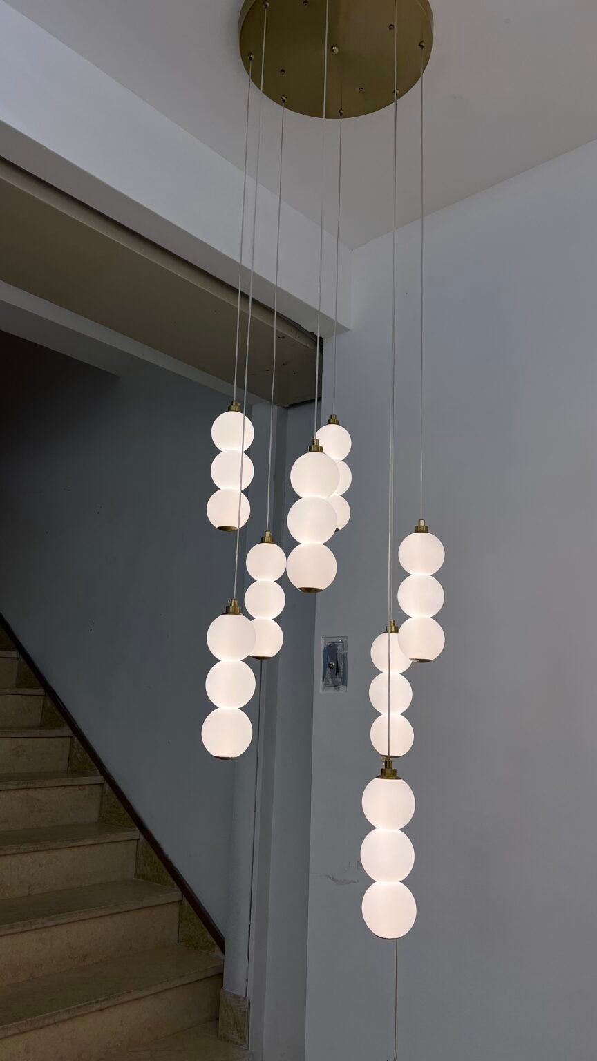 Overview The Modern Globe Spiral Chandelier is a statement lighting piece designed for luxurious and contemporary interiors. Featuring frosted glass globe pendants suspended in an elegant spiral arrangement, this chandelier creates a stunning visual impact while providing warm and inviting illumination. Design and Features 🔹 Multi-Globe Spiral Design – A cascading arrangement of frosted globes...