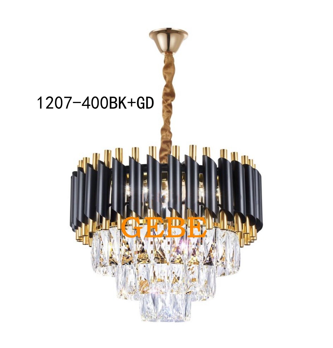Overview The Elegant Black and Gold Crystal Chandelier exudes sophistication and contemporary charm, combining a bold black metal design with luxurious golden accents. Its stunning crystal droplets add a touch of glamour, making it an ideal lighting fixture for both modern and classic interiors. Design & Features 🔹 Contrasting Black and Gold Metal Frame – The sleek black metal bars are complemented by golden metallic accents, creating a bold and luxurious aesthetic. 🔹 Cascading Crystal Droplets – Elegant, faceted crystal droplets hang from the base, adding a dazzling touch that refracts light beautifully. 🔹 Modern Geometric Design – The geometric arrangement of the metal elements offers a sleek and artistic appearance, enhancing its modern appeal. 🔹 High-Quality Materials – Crafted from premium materials for durability and long-lasting elegance. Lighting & Functionality 💡 Bright, Ambient Illumination – Offers a warm, ambient light that is perfect for creating a welcoming and luxurious atmosphere. 💡 Energy-Efficient – Compatible with LED bulbs for energy-efficient lighting that reduces power consumption. 💡 Great for Large Spaces – The chandelier’s design is ideal for large living areas, dining rooms, or any space that requires both illumination and a stylish statement piece. ApplicationsPerfect for Dining Rooms & Living Rooms – A striking choice for dining tables, living rooms, or other large spaces needing both light and style. ✔ Ideal for Commercial Spaces – Perfect for upscale restaurants, hotels, or retail boutiques seeking to elevate the ambiance with a sophisticated lighting solution. ✔ Great for High-Ceilinged Rooms – Its expansive design is ideal for larger rooms or spaces with high ceilings, ensuring it maintains visual balance. ✔ Matches Contemporary & Luxury Decor – The black and gold color combination enhances modern, luxury, and even industrial-style interiors. The Elegant Black and Gold Crystal Chandelier is the perfect choice for those who want a lighting fixture that combines luxury, contemporary design, and functionality, making any space shine with timeless beauty.